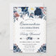 Magnífica acuarela Flores de invierno azules y blancas y diseño de bayas con confeti purpurina de oro