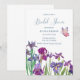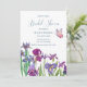 Flores de iris Invitación a la ducha de novia con texto azul y acuarela
