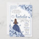 Elegante Dusty Blue & Navy Floral Quinceanera Invitación de cumpleaños