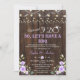 Encantadoras luces de cuerda de madera antigua; Después de que dijimos que sí, ¡vamos a hacer una barbacoa!. Diseño de tarjeta única con luces de cuerda, esquinas de flores de lavanda con acuarela elegante, "SÍ" con un anillo que reemplaza la letra "O", en un fondo de madera de granero marrón. Utilice la herramienta Personalizar para agregar su información. Vea también mi colección de flores de lavanda.