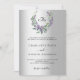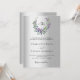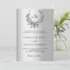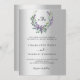 Un fondo falso plateado. Una corona floral de flores de lavanda y de eucalipto acuático. Personalice y agregue sus iniciales, nombres y detalles del monograma. Texto negro.