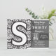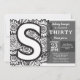 Este diseño especial presenta arte de tatuajes en blanco y negro con un audaz monograma "S" rodeado de peonías, rosas, girasoles y otras flores. Si no eres un "S" este fondo está disponible en muchas iniciales de monograma. Celebra un cumpleaños hito con esta plantilla fácil de actualizar. Simplemente rellene el nombre, la edad, la fecha, la hora, la ubicación del fiesta y cualquier nota RSVP u otra información.