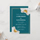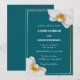 Invite a sus seres queridos a celebrar su unión con esta sofisticada y vibrante invitación de boda en color turquesa. Este diseño presenta un fondo turquesa profundo y rico que proporciona un contraste impresionante con las flores de orquídea blancas y crujientes que enmarcan las esquinas. Un delicado borde dorado con aspecto metálico añade un toque de lujo y refinamiento a la presentación general.