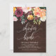 ¡Vamos a duchar a la futura novia! Invite a los huéspedes con esta rústica invitación a bañarse en una ducha con flores. Cuenta con un garaje floral acuático de color naranja, peonía roja y marfil, margarita, toques rosas y verdes con un fondo de madera falsa. Personalice agregando los detalles de su evento. Esta invitación rústica floral de otoño es perfecta para las duchas de otoño y de novias en el jardín.