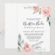 Compliquen a su rústico boda español con esta invitación a nuestra boda, flor de peonía rosa. El diseño presenta acuarelas flores rosadas con hojas verdes y grises.