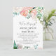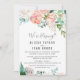 Esta tarjeta de recepción de huida de flores de peonía románticas es perfecta para una fiesta elegante después de la huida. El diseño floral presenta flores de acuarela en cascada de color rosa, melocotón y blanco. Las tarjetas de RSVP se venden por separado.
