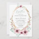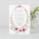 Invitación a la boda | Marco de estilo terrario con flores primaverales en hojas de eucaliptos de color rosa y verde claro que rodean el marco. Una combinación de caligrafía de escritura combinada con un diseño de texto de estilo minimalista y contemporáneo lo convierte en una suite boda de estilo de tendencia. Diseño creado para TheBarefootBride™ por © WhimsicalArtwork™. Esto forma parte de una colección de suites de papel boda con accesorios bodas a juego, además de una ducha para bebés y otro papel para ocasiones. No dude en ponerse en contacto con nosotros si necesita ayuda.