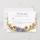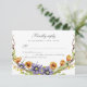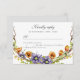 Tarjeta de respuesta Rsvp con flores de manantial acuático, tulipanes, forsythia, clematis y ramas en arreglos coloridos.