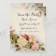 Boda fácil de personalizar ¡Salven la invitación de la fecha! El amor por el ilustracion vintage y el diseño romántico boda con un florido borde decorativo con hermosas flores de jardín de primavera florecientes, rosas antiguos con varios matices de flores rosas y amarillas en flor.