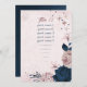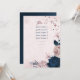 romántico azul marino y polvorientas flores rosadas rosa de asiento cartón número de mesa Los detalles del purpurina son simulados