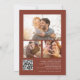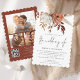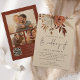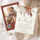 Flores Terracota Rústicas 3 Fotos Código QR Boda. Elegantes flores y bayas y hierbas en colores de otoño terracota marrón y crema, fluyen hacia abajo desde la parte superior. La boda de está en un estilo de letra manuscrita. Personalice fácilmente el resto del texto con sus propios detalles. Reemplace las tres imágenes de muestra en la parte posterior con las suyas. Agregar su código QR al sitio web de su boda en la parte trasera hace que esta sea una opción conveniente para que sus invitados respondan y vean todos los detalles sin necesidad de tarjetas de respuesta y detalles separadas. Su código QR se generará automáticamente para actualizar el código de muestra en el diseño, cuando simplemente cambie la URL de muestra en la plantilla con la URL del sitio web de su boda.