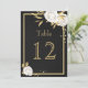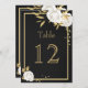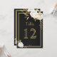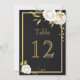 mesa de personalizable elegante número de tarjeta flores blancas con algunas hojas de oro número de mesa negro carta