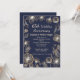Invitación Flores doradas en azul 65 aniversario de bodas