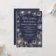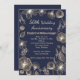 Flores brillantes doradas sobre fondo azul medianoche 50 aniversario Boda Invitación a la fiesta