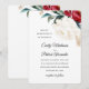 Los Navidades elegantes o la invitación a la boda de invierno cuentan con un hermoso ramo de flores rojas y blancas con vegetación de moda y elementos dorados. Consulte esta colección de bodas de vacaciones para coordinar elementos.