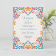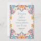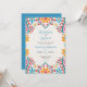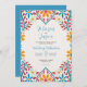 Este diseño mexicano de Invitación a Boda de Flores Coloridas Florales presenta un fondo blanco suave y texturado que le da un escenario audaz a las obras de arte florales vívidas que enmarcan la parte superior e inferior. Los bordes muestran flores extravagantes, dibujadas a mano en colores brillantes como amarillo, rojo, azul y blanco, complementadas con viñas verde azuladas y acentos puntiagudos juguetones. El acondicionamiento simétrico de los florales con motivos de hoja en forma de corazón confiere al diseño un encanto animado de arte folclórico, lo que lo convierte en un lugar perfecto para celebraciones o fiestas.