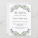 Un fondo blanco decorado con flores de lavanda y vegetación eucaliptica. Personalice y sus nombres y detalles.