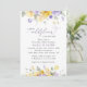 Invite a sus amigos y familiares con estilo y establezca el tono de su día especial con esta encantadora invitación a la ducha de bebé. El diseño presenta flores de color morado y amarillo y vegetación sobre fondo blanco.