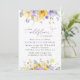Invite a los amigos y a la familia con estilo y establezca el tono de su día especial con esta encantadora invitación de cumpleaños. El diseño presenta flores de color morado y amarillo y vegetación sobre fondo blanco.