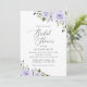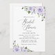 Invite a amigos y familiares con estilo y establezca el tono de su día especial con esta encantadora invitación a la ducha de novia. El diseño presenta flores de color morado y vegetación sobre fondo blanco.