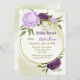 Hermosa invitación de despedida de soltera con flores de color lila y berenjena morada y hojas verdes. Los detalles de brillo dorado son simulados. Es adecuada para invitaciones de despedida de soltera y baby shower. PARA VER MÁS PRODUCTOS COINCIDENTES, haga clic en la colección anterior o contácteme