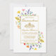 Moderna y elegante acuarela Flor silvestre Quinceanera Invitación incluye delicados amarillos, rosados, melocotones, polvorientos azules, verde salvia, violeta, rojos y naranjas de flores silvestres, amapolas, hojas de eucalipto y otros hermosos paisajes botánicos sobre un marco dorado. Corona de Tiara de Oro.