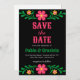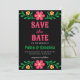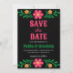 ¡Celebra tu amor con esta elegante y festiva tarjeta de cita! Con un hermoso diseño floral inspirado en el tradicional papel picado mexicano, esta tarjeta es perfecta para una boda de destino o una celebración temática de fiesta. El fondo negro crea un estilo sofisticado y moderno, mientras que los colores vivos y los detalles intrincados le dan un toque de encanto tradicional.