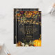 Hermoso naranja oxidado y oscuro otoño borgoñoso, flores y bordes de calabaza con cuerdas de luces de trineo doradas sobre un fondo de madera oscura de granero, haciendo una encantadora y elegante invitación a la fiesta de cumpleaños por 70 años con un moderno guión de tipografía de oro escrito a mano. ++++++++ Fácil de personalizar con tus detalles! Adecuado para el rústico tradicional | país | granja | reuniones de familiares y amigos al aire libre.