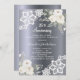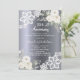 Para un elegante y romántico 25º aniversario de boda, la boda de plata. Un fondo oscuro de aspecto falso plateado decorado con flores blancas, rosas y encaje blanco. Personalice y agregue sus nombres y detalles.