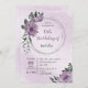 Invitación a una fiesta de cumpleaños única con flores moradas polvorientas y hojas verdes. PARA OBTENER MÁS PRODUCTOS COINCIDENTES, haga clic en la colección superior o póngase en contacto conmigo.