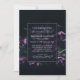 Invitación fúnebre en tal azul marino mira el negro que ofrece una fotografía de flores púrpuras hermosas, y palidece el texto púrpura.