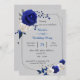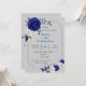 invitación a fiesta geométrica de cumpleaños de flores reales azules blancas de plata Los detalles del purpurina se simulan