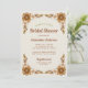 Estas invitaciones a la moda a la ducha de novias están decoradas con elegantes flores retro y hojas de colores neutros vintage como el marrón, el beige, el oro, el verde oliva y la crema de marfil con textos de estilo retro.