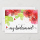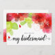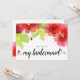 Flores rojas etéreas y escritura cursiva estilo caligrafía escrita a mano boda de primavera floral "¿Serás mi dama de honor?" tarjeta. Un diseño de bonito con flores rojas y rosas con hojas verdes.