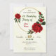 flores rojas románticas y hojas verdes hermosa invitación de la fiesta de cumpleaños de la guerra de oro