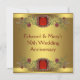 Invitación Flores Rojas Oro Fiesta de Aniversario de Bodas nú