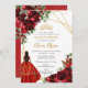 Invitación Flores rojas vibrantes Princesa Quinceañera