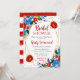 Invitación Flores rojas y azules enmarcan ducha de novia