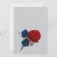 flores románticas rojas y azul marino sobre marco geométrico gris plateado contra invitación de cumpleaños gris