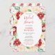 Esta encantadora y caprichosa invitación a la ducha de la novia acuarela presenta flores de colores en rojo y crema con vegetación. El texto combina guiones manuscritos y sans serif para un estilo elegante y moderno. Ideal para una ducha nupcial de primavera o verano.