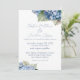 Esta invitación de boda floral romántica presenta hortensias azules de acuarela. Un delicado ramo de flores de hortensia se muestra en la parte superior y otro en la parte inferior.