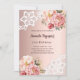 Invitación Flores rosa dorada rosa rosa encaje elegante cumpl