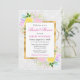Invitación Flores rosadas, amarillas y azules Ducha dorada de