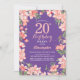 Invitación Flores rosadas florales 20 cumpleaños violeta púrp