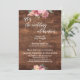 Esta tarjeta distintiva fue diseñada para invitar a sus amigos y familiares a su recepción de boda o fiesta que se celebra algún tiempo después de la ceremonia de matrimonio en sí. El fondo estaba cubierto con una imagen que representa madera marrón que ha sido acentuada con hermosas flores rosadas pintadas. Sobre la superficie de fondo, utilizando una fuente de escritura moderna y giratoria, coloqué un gráfico de tipografía superpuesto que dice "celebración después de la boda" con giros y curvas extravagantes. Utilice los campos de plantilla proporcionados para actualizar la tarjeta con sus propios detalles. Si desea personalizar aún más, mover cualquier detalle a otro lugar, cambiar la fuente o el tamaño del texto, simplemente haga clic en el enlace proporcionado y edite el diseño como desee. Todas las capas se agregaron por separado y están desbloqueadas para darle control total sobre el diseño. Por favor, no dude en hacérmelo saber para solicitudes especiales o para asistencia con la personalización.