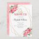 Invitación Baby Shower de marco geométrico con flores rosadas