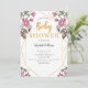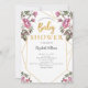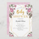 Invitación Baby Shower de marco geométrico con flores rosadas
