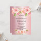 Una elegante tarjeta de invitación para una fiesta de cumpleaños número 50 o cualquier otra fiesta de cumpleaños. Con flores contemporáneas de dahlia color rosa, melocotón y coral como decoración. Un fondo rosado polvoriento. El nombre está escrito con escritura de estilo con letras negras.