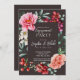 Flores rosas y rojas | Invitación a la fiesta de compromiso de pizarra - ¿Está buscando una invitación a una fiesta de compromiso floral de bonito? Echa un vistazo a esta invitación gris oscuro, con un marco floral rosa, naranja y blanco con vegetación. Estas flores de bonito enmarcan las palabras, creando un hermoso tema de primavera o verano en tu papelería boda. Personalice su invitación a la fiesta de compromiso con todos sus detalles, incluidos los nombres de la pareja, la fecha del fiesta, la ubicación e información sobre cómo RSVP y quién está arrojando al fiesta.
