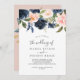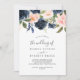 Esta invitación a una boda blanca con flores de color azul y marina es perfecta para un boda floral. El diseño es clásico y elegante y cuenta con un acuarela de color azul marino moderno y flores rosas de color rosa.
